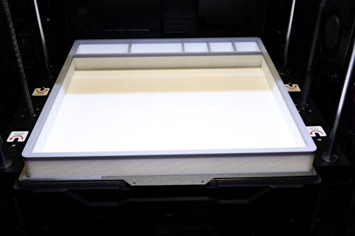 I’m ashamed to admit that I undershot my filament usage calculation slightly, and I chickened out just before the finish line. I didn’t have any more white in stock, so I switched to some grey of the same type from the same manufacturer by doing a mid-air refuel, shoving the end of the new spool in chasing behind the very tail of the old one. I don’t think it looks too bad. I may just spraypaint the entire thing white later anyhow. I wanted to use a light color in order to more easily spot and keep track of screws and springs and such.