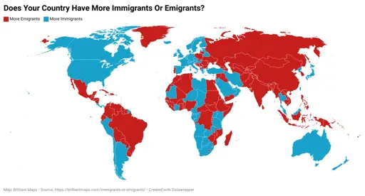 More people migrant into North Korea than out. Not very surprising, it’s quite difficult to get out, but to get in you can just be kidnapped.