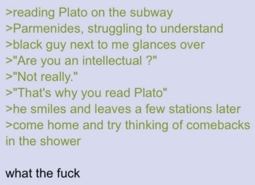 I don’t get this one. Is an intellectual supposed to read Socrates or something?
